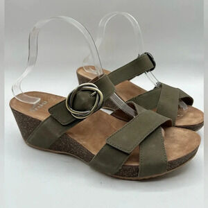 DANSKO "Susie" Sage Milled Nubuck Sandals Platform Shoe Open Toe Heel Sz 40