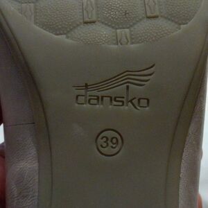 Light gray slip on chunky block heel. Burnished heel and toe. These have not been worn although they do have some scratches and smudges on the heel. The heel is darker than the rest. Cushioned insole.