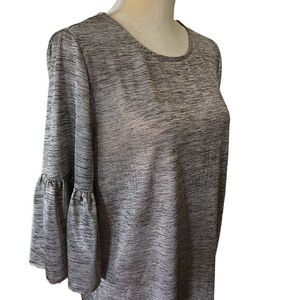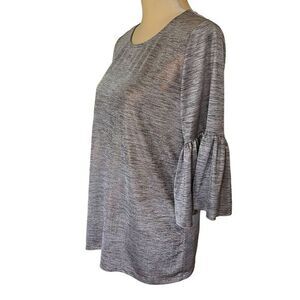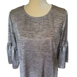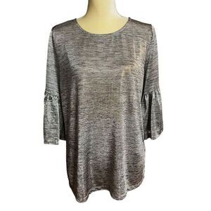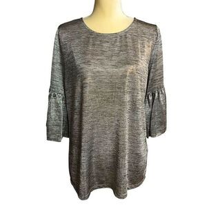 DANTELLE Women's Top M Metallic Gray & Gold Blouse 3/4 Sleeve Pullover Sheer
