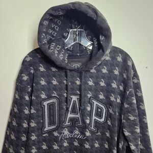 DAP x GAP Dapper Dan Hoodie Size XL TALL Houndstooth Gray Harlem Embroidered AOP