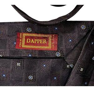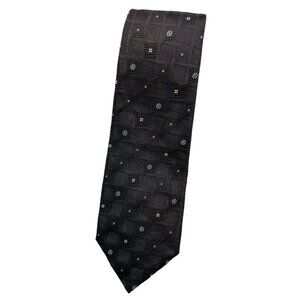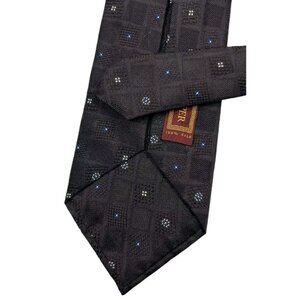 DAPPER XL 7fold Men's 100% Silk Necktie LUXURY Tie Brown Geometric W:4.1" EUC