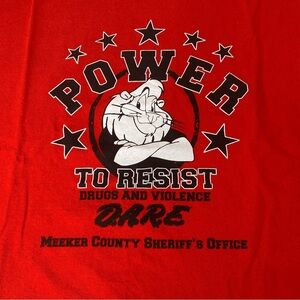 DARE Power To Resist Drugs and Violence Lion Men's Red T-Shirt Size Large. Pre-owned excellent condition. See pics for details. Approximate measurements are: 20.5” Chest, 28” Long