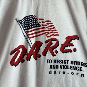 D.A.R.E T-Shirt Large Resists Drugs and Violence American Flag White Top Tee