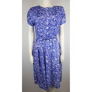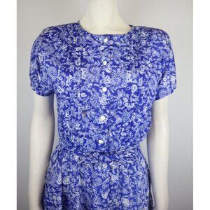 DARIAN PETITES - WOMEN'S BLUE FLORAL PRINT BELTED SHORT DRESS - SIZE 6P