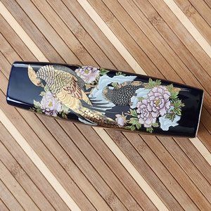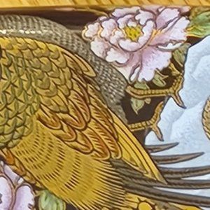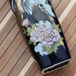 DARK BLUE & GOLD JAPANESE VASE-PEACOCKS & PINK FLOWERS-9 1/2" TALL