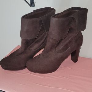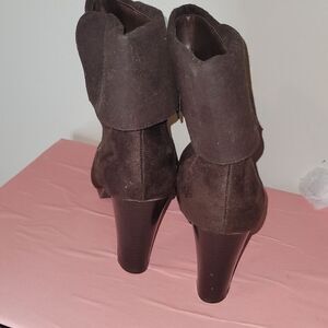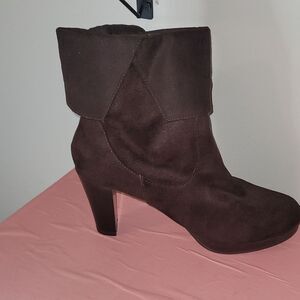 They are giving me Jack Sparrow And I love it! Grab these super cute dark Brown boots with a dark Brown block heel for comfort comfort they will pair well with dark jeans a white tea and a cute Brown sweater or jazz it up with tights under under a skirt and a really cute top.