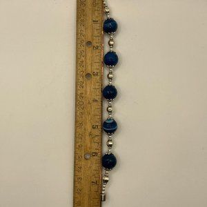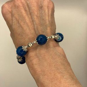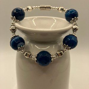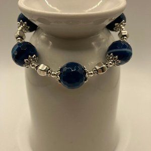 Agate DARK Blue Bracelet Large Agate Faceted Bead 14mm, Grade A, Beautiful NEW