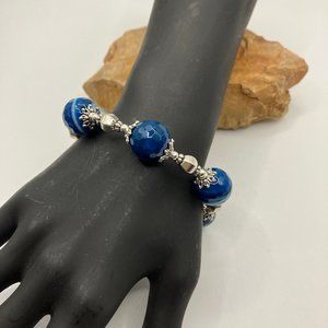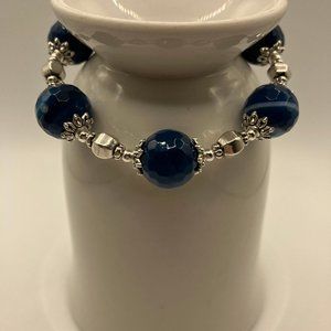 DARK Blue Agate Beaded Bracelet Large Agate Faceted Bead 14mm Grade A NEW