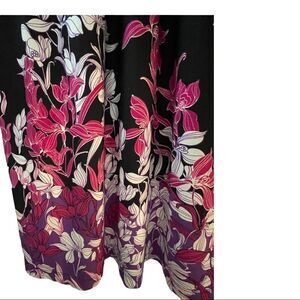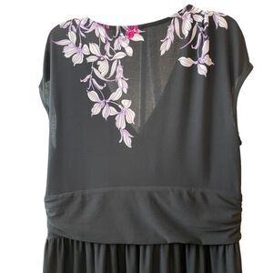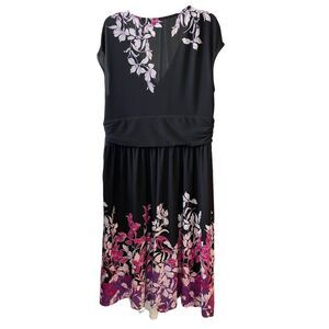 DARK FLORAL BLACK DRESS WITH GATHERED CAP SLEEVES