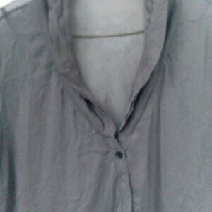 DARK GRAY CREPE JACKET SHEER LONG-SLEEVE BLOUSE SIZE M SHAWL NECKLINE TWO LAYERS