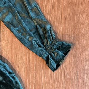 If your daughter wants the fancy Christmas dress, but wants to be comfy, this is for you! Super soft and cozy, long sleeve velour style dress from Gymboree. Girls size 8. Relaxed sizing. Photos make this look teal, but it is a hunter green and perfect for the holidays!