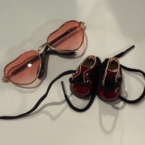DARK RED SHINY BOOTS AND HEART GLASSES FOR LABUBU, OTHER SMALL DOLLS
