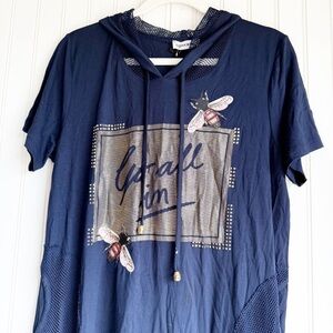 DARKMEN DARWIN Size M Blue Mesh Hooded Short Sleeve Tunic Dress NEW!