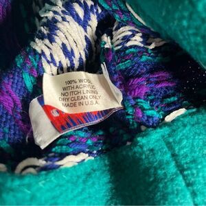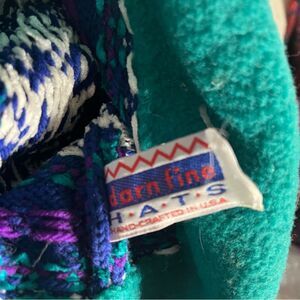 DARN FINE HATS Wool Acrylic Winter Hat Beanie Fair Isle Blue White Teal VINTAGE