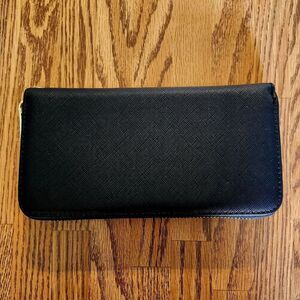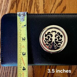 Special Features: Black Vegan Leather, Large Gold Medallion Dasein Logo, Three open Compartments, Compartment with Zip closure, Interior Card Slots (10), Full Zip Exterior Closure, Goldtone Hardware, Detachable Wristlet. Classy and Classic!😍