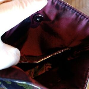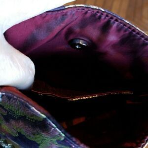 ADORABLE DAS BAG HAND MADE IN SAN FRANCISCO BEAUTIFUL PURPLE AND GREEN BROCADE FABRIC WIRH GREEN CRYSTALS HANDLE!!! NEW WITHOUT TAGS AND NEVER WORN PRISTINE CONDITION!!!