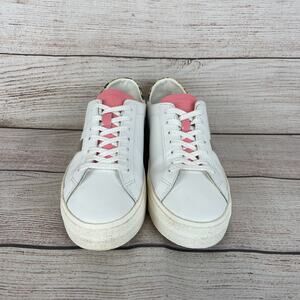 The D.A.T.E, Hill/Go Ply Sneakers in EU 41 (UK 6.5, US 8) are a stylish and versatile pair of unisex athletic shoes. With a low-top design, lace-up closure, and solid white color with pink and silver accents, these sneakers are perfect for casual or activewear occasions during the summer and spring seasons. Made with leather upper material and a rubber outsole, these sneakers provide both comfort and durability. The D.A.T.E. brand logo adds a touch of personalized style to these trendy sneakers, designed for walking activities. Made in Vietnam, these sneakers are a fashionable addition to any wardrobe.