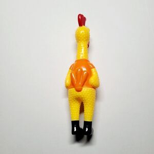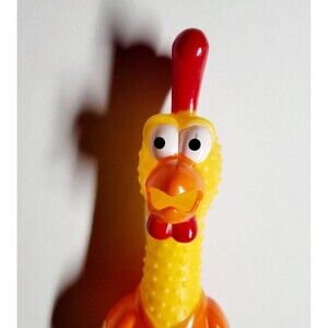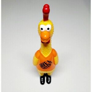 The product is a promotional advertising toy chicken from Dave & Busters. It is made of yellow plastic and features a screaming and squawking mechanism. This toy chicken is an original piece and is likely part of a marketing campaign or promotional giveaway for the restaurant and entertainment venue. It adds a fun and quirky element to the collection of Dave & Busters memorabilia and would appeal to fans of the restaurant as well as collectors of unique advertising items.