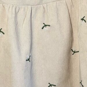 DAVI & DANI Corduroy Fabric embroidered Bib floral print Mini Dress in cream tan