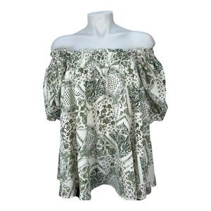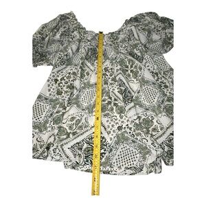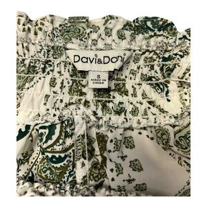 DAVI & DANI White Ruffled Relaxed Blouse size Small green, white