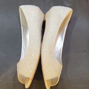 DAVID BRIDAL LOW WEDGE PEEP-TOES WITH CRYSTALS WOMEN'S SHOE