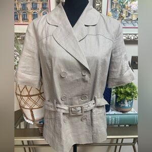 DAVID BROOKS LINEN TAN JACKET DOUBLE BREASTED SAFARI STYLE SHORT SLEEVE SIZE XL