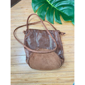 DAVID DART DRAWSTRING SHOULDER CROSS BODY BAG SHINY Brown with SUEDE