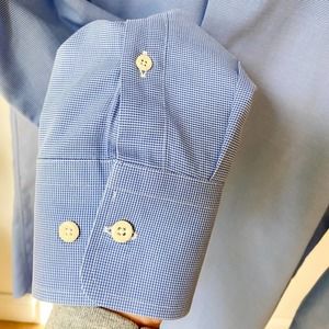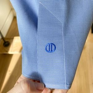 DAVID DONAHUE Men's Blue/White Mirco Houndstooth Trim Fit Shirt sz 16 34/35