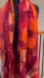 Eye-catching scarf with a patchwork design. Features bold shades of red and orange. Perfect for a stylish accent.,SHEER WITH FLEX OF BURNOUT VELVET THROUGH OUT: WITH FRING, PRE OWNED IN EXCELLENT CONDITION:
