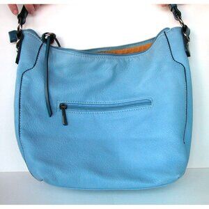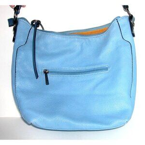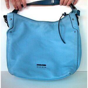 DAVID JONES Light Blue Faux Leather Hobo Shoulder Bag With Exterior Zip Pocket
