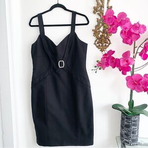 DAVID MEISTER Faille Rhinestone Cocktail Midi Dress Black 10