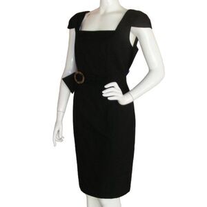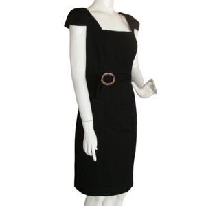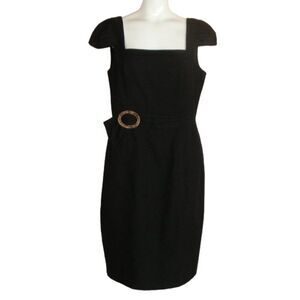 DAVID MEISTER Dress, 12, Black, Cap sleeves, back zip, Faux Leopard buckle Tweed