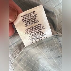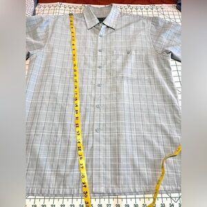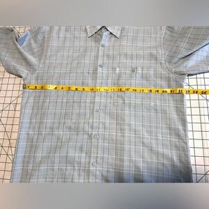 Men’s light blue and white plaid short sleeve casual button down shirt from DAVID TAYLOR, size M.