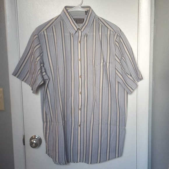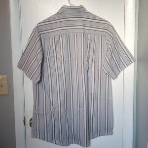 DAVID TAYLOR MENS MEDIUM SHORT SLEEVE DRESS SHIRT BLUE WITH BEIGE AND WHITE