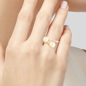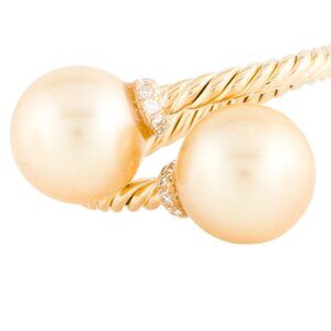 DAVID YURMAN 18K YELLOW GOLD PEARL & DIAMOND SOLARI BYPASS COCKTAIL RING