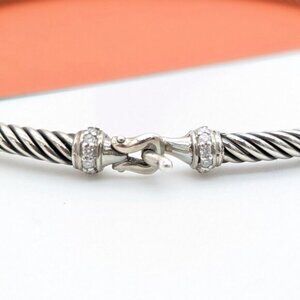 DAVID YURMAN 3mm Classic Cable Sterling Silver Diamond Buckle Bracelet Medium