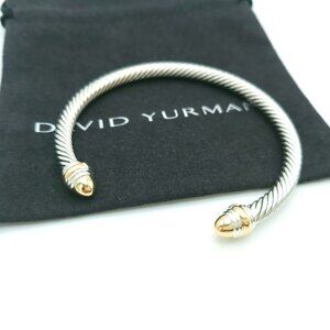 DAVID YURMAN 5mm Cable Classic Bracelet w/ 14k Gold in Sterling Silver 7 inch