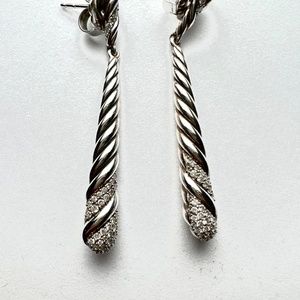These are GORGEOUS sterling and diamond drop earrings in the classic David Yurman cable style.