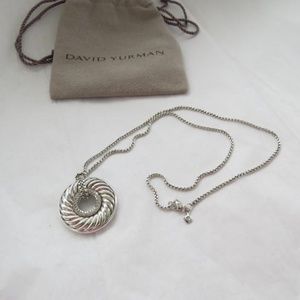 Authentic DAVID YURMAN Diamond Sculpted Cable Disc Pendant Necklace in excellent condition. Featuring a box chain and a fixed disc pendant with pave set round brilliant diamond accents and a lobster clasp closure. Comes with pouch.