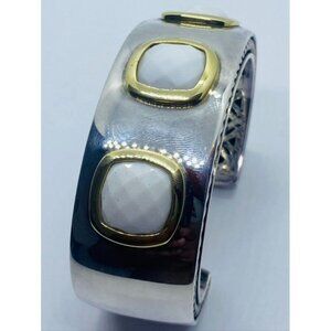DAVID YURMAN SILVER 925 & 18K GOLD ALBION WHITE AGATE 25MM Wide