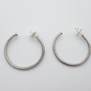 DAVID YURMAN Sterling Silver Classic Cable Hoop Earrings 1.5 inch with Pouch