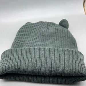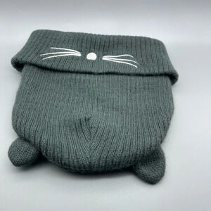 DAVID & Young Cat Beanie, Greenish/Grey, EUC