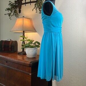 DAVID’S BRIDAL | Malibu Cocktail Dress with Mesh Top & Deep V Back Zip | Size 8