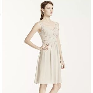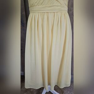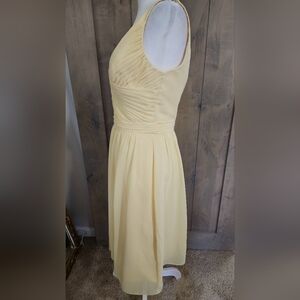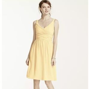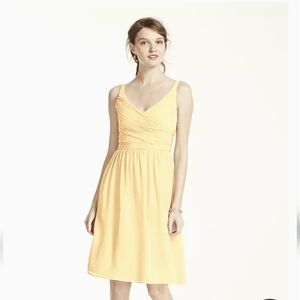 DAVID'S BRIDAL Short Chiffon V-Neck Dress with Ruching In Canary Yellow. Size 4