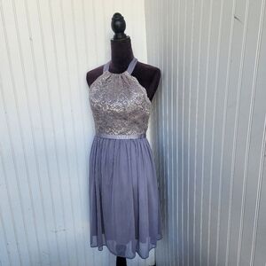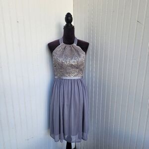 DAVIDS BRIDAL Silver Gray Bridesmaid Halter Tie Strapless Dress Nylon Mesh Sz 4