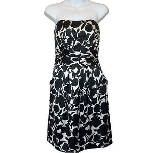 DAVID’S BRIDAL STRAPLESS BLACK & WHITE FLORAL COCKTAIL DRESS