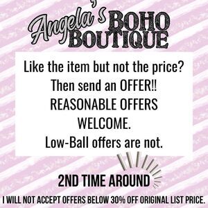 All Boho Boutique items are steamed to remove wrinkles and odors and kept in a smoke-free, cat-friendly home. We are NOT RESPONSIBLE for anyone’s allergies or sensitivity to smells. SMELL IS SUBJECTIVE AND THEREFOR CANNOT BE NOTED. If you are overly sensitive to smells, or have allergy concerns, ASK QUESTIONS BEFORE BUYING.