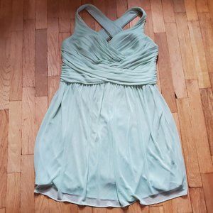 DAVID'S BRIDAL mesh short bridesmaid dress with crisscross back meadow green