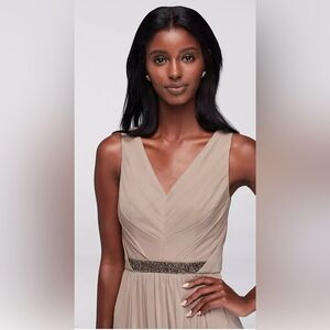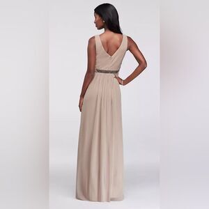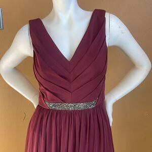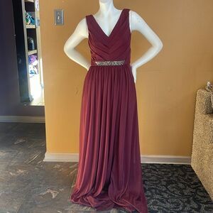 DAVID'S BRIDAL Long Mesh Dress with V-Neck w/ Beaded Waistband size 6 color/Wine