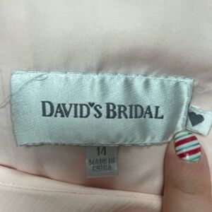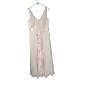 David's Bridal Petal Pink Sleeveless Chiffon Dress with Ruffled Back Detail